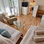 Mango Lu Z Balkonem, Plaza 300Mアパ-トメントは,ボハテルフ・モンテ・ツァスシノから8分以内で歩いて行けるソポトにある海辺のアパ-トです. ここは部屋にまた電気ポット,冷蔵庫 とキッチン用品を完備した器具でいっぱいの台所があります.